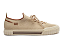 Tênis Anacapri Nude Alê Knit. O tênis Alê Anacapri nude é feito em knit, com atacadores bicolores, biqueira emborrachada texturizada e solado baixo emborrachado com detalhe de duas linhas marrons na lateral.